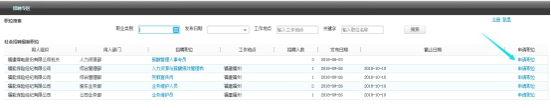 社會人員可登陸福能集團招聘專區(qū)(網址:http://218.5.1.214:83/rmweb/rmweb_zhaopin.html),并參照系統(tǒng)所示路徑進入社會招聘,點擊“申請崗位”進行注